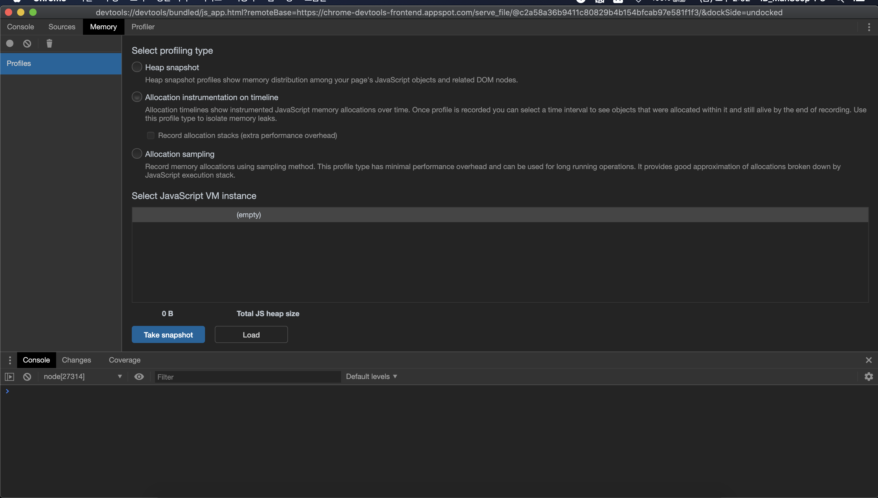 크롬 개발자도구에서 node.js 서비스 메모리, CPU 프로파일링 하기 본문