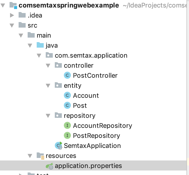 작성이 끝나고 나서 패키지의 폴더 구조를 자세히 보면 해당 프로젝트는 아래와 같은 구조를 가지게 된다.