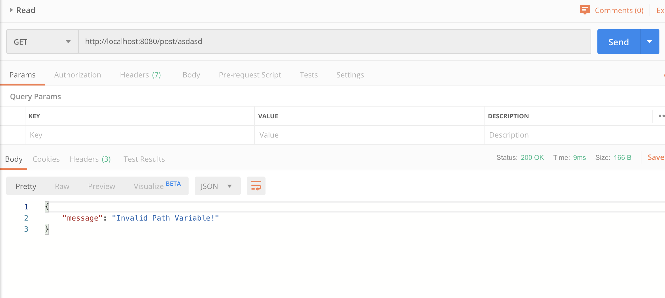 아래는 Postman으로 위에서 본 예외가 발생할 만한 값을 넣고 테스트 한 결과이다.