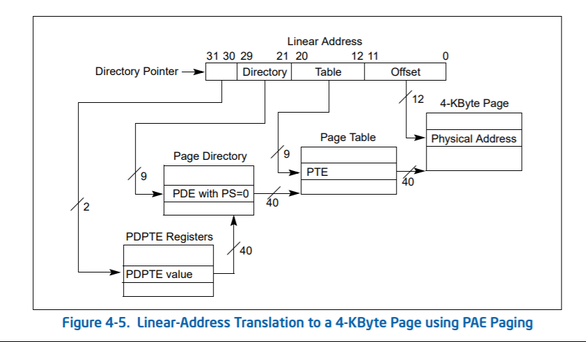- Physical Address Extension - set : 32bit 보다 큰 물리주소를 사용할 수 있음. - clear: 물리주소 32-bits 로 제한. - IA-32e mode 로 진입 전에 반드시 세팅 되어야 한다. |