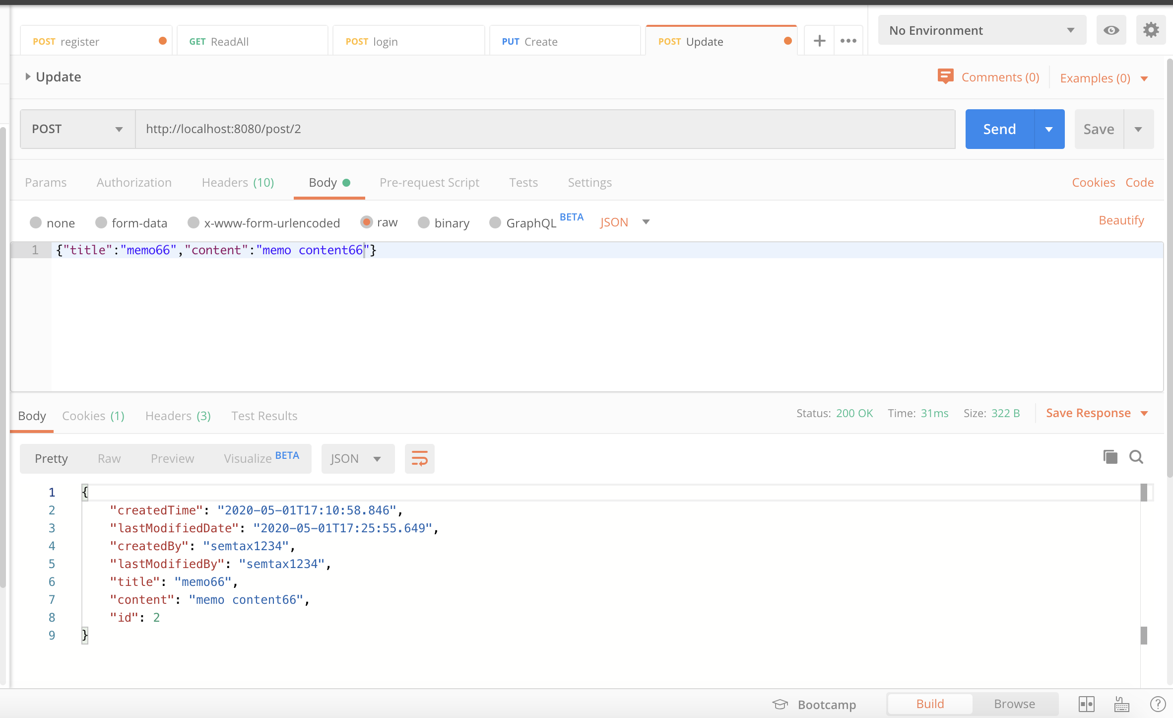 그리고 나서, 아래와 같이 게시글 을 수정 하는 API에 요청을 해보자.