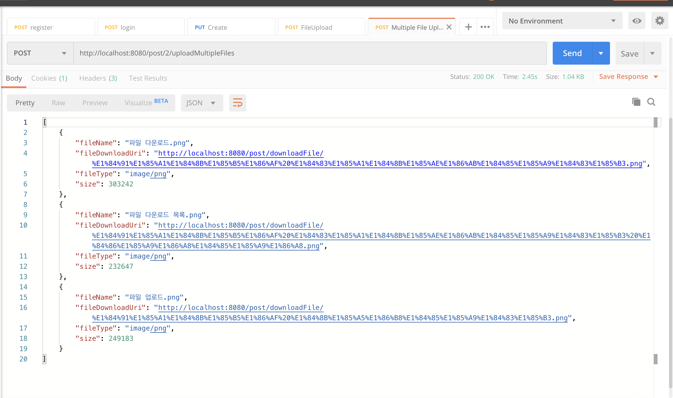 그리고 이번에는 여러 파일을 아래와 같이 업로드 해보자