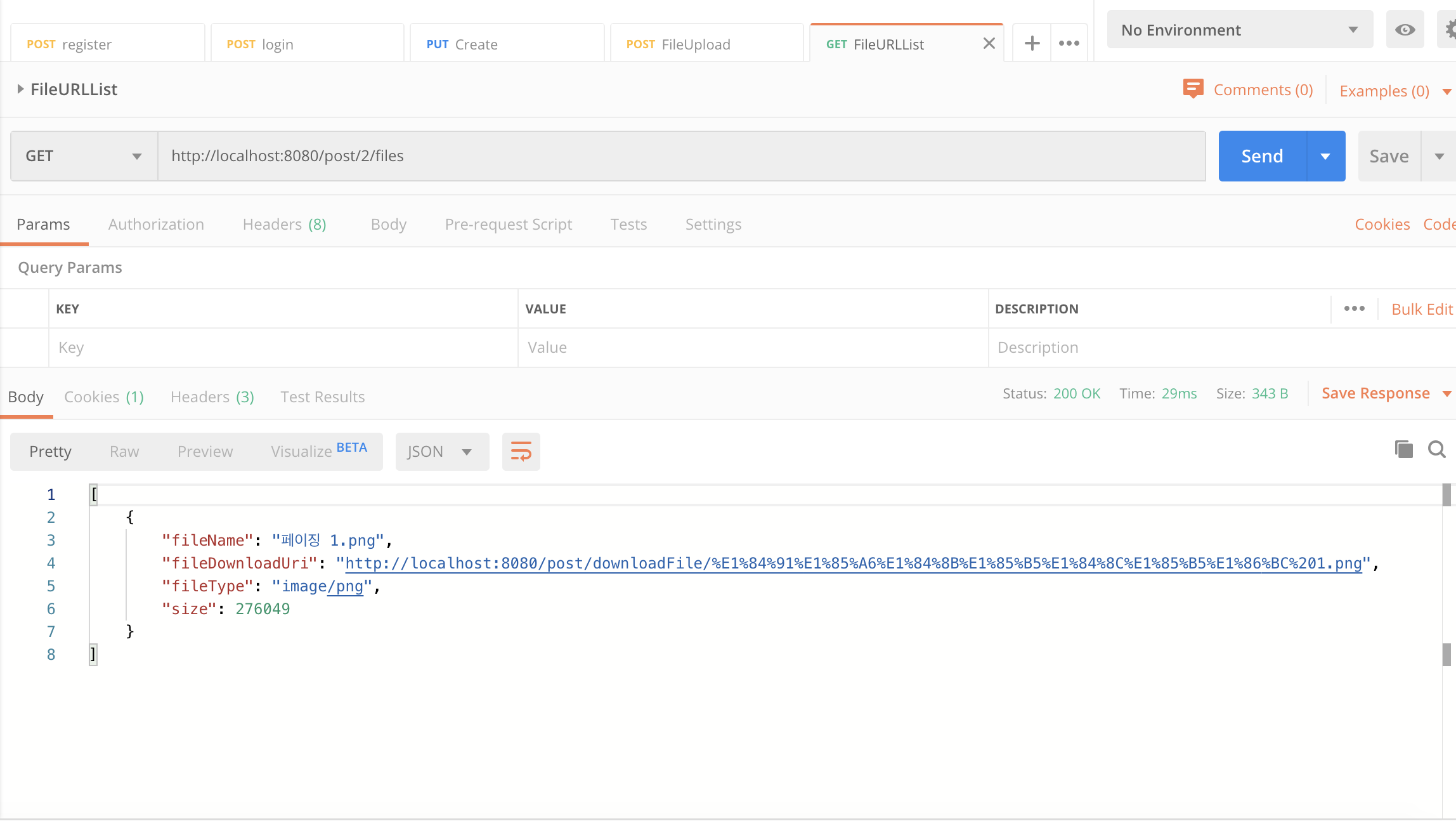 downloadFilesInfoInPost 함수는, 해당 게시물에 속한 첨부파일들의 목록들을 얻을때 사용하는 함수이다.